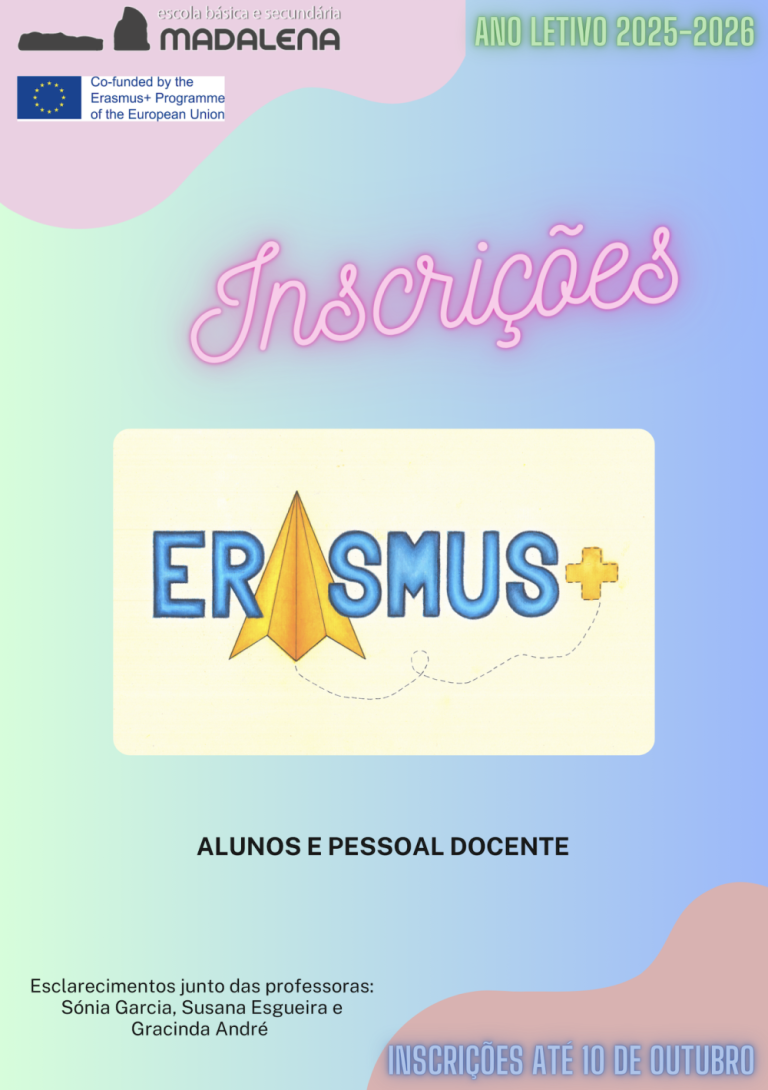 Pelo terceiro ano consecutivo, estão abertas inscrições à participação nos projetos Erasmus+ da nossa escola, ao abrigo do Projeto de Acreditação Erasmus 2023-2027.Se és aluno...